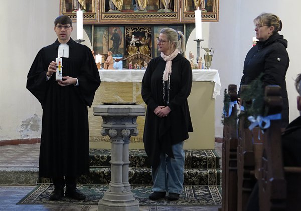 Tauf-Gottesdienst in Wolfen12. Januar 2025![]() Chor des Heinrich-Heine-Gymnasiums Eingießen des Taufwassers ![]() ![]() Nach dem Taufakt: Die Taufkerze wird überreicht. |