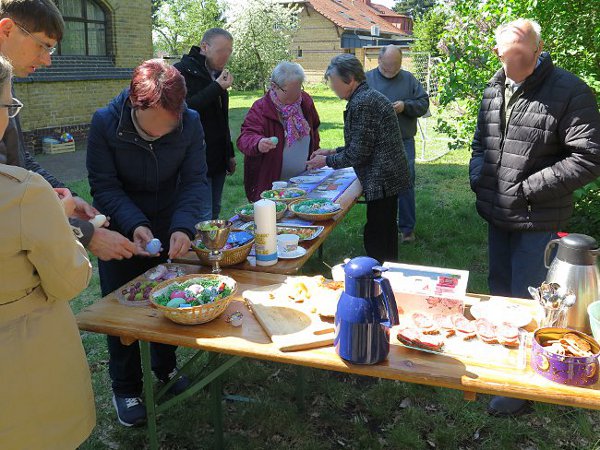 Ostergottesdienst mit Taufe und Abendmahl in Wolfen20. April 2025![]() ![]() ![]() ![]() Abendmahl nach dem Gottesdienst draußen: Osterfrühstück ("brunch") ![]()