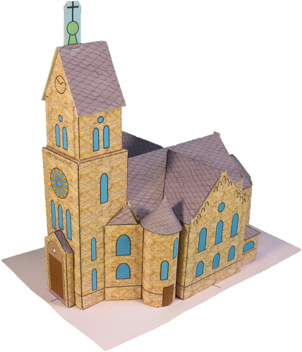 Hier gibt es Bastelbögen, mit denen man sich Papier- (/Papp-) Modelle von Kirchen (u.a.) basteln kann. Vielleicht etwas